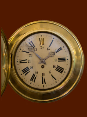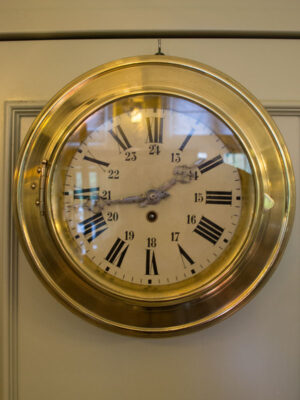 Dit is een mooie aparte schoolklok. Gemaakt in Frankrijk aan het begin van de vorige eeuw. Messing kast met een diameter 40cm.