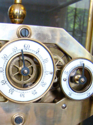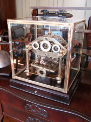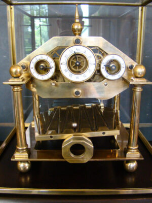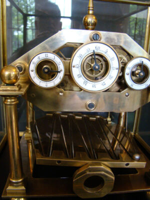 Dit was de klok voor de klokkenmaker zelf in het midden van de 19e eeuw. Dit is een precisieklok. De klok heeft de dure, maar erg nauwkeurige schaargang. Dit gangsysteem geeft de secondeslinger een geringe uitslag wat de nauwkeurigheid weer ten goede komt. Deze klok is helemaal uniek omdat hij ingericht is om door een elektrisch gewicht automatisch te worden opgewonden.